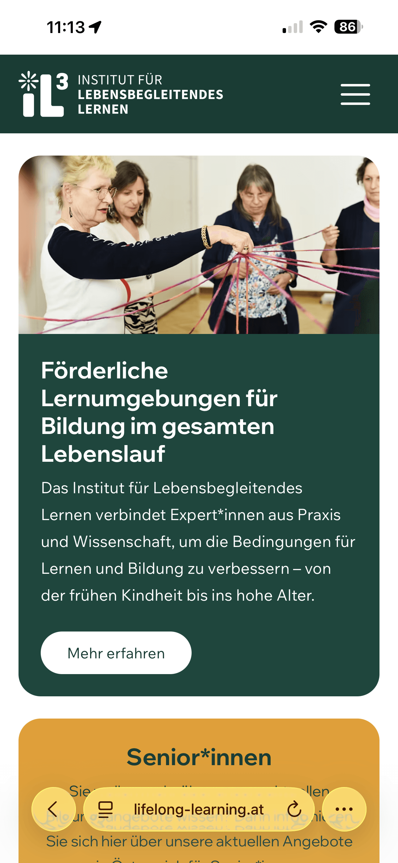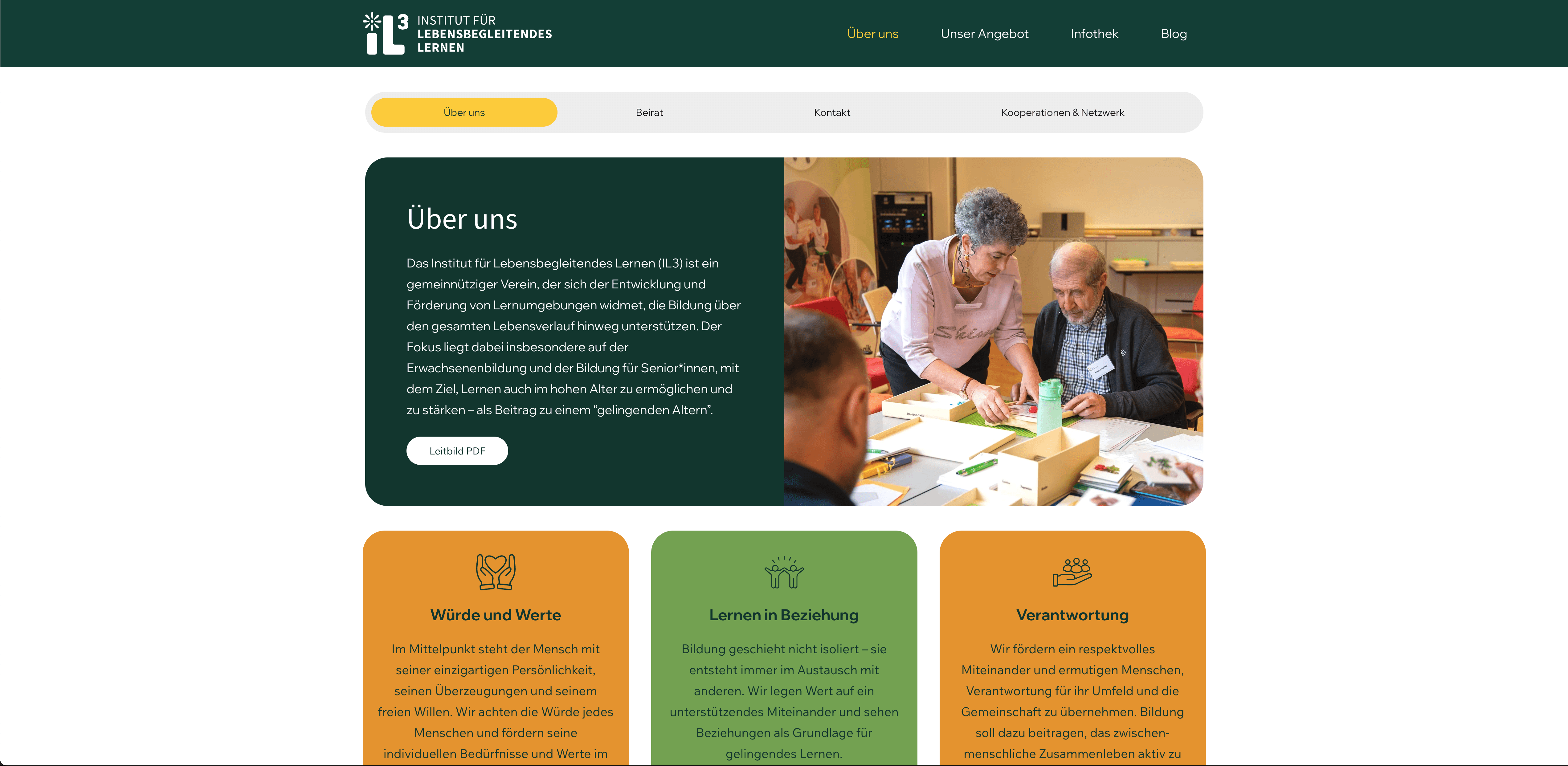 This project involved the rebranding of iL3 - the 'Institut für Lebensbegleitendes Lernen', a non profit organization dedicated to promoting learning across the entire lifespan, with a particular focus on adult education and learning in later life. The goal was to strengthen the institute’s professional presence through a new brand identity and website. Alongside the visual redesign, we worked closely with the institute to restructure and clarify website content, to ensure the platform speaks clearly to both learners and educators.
