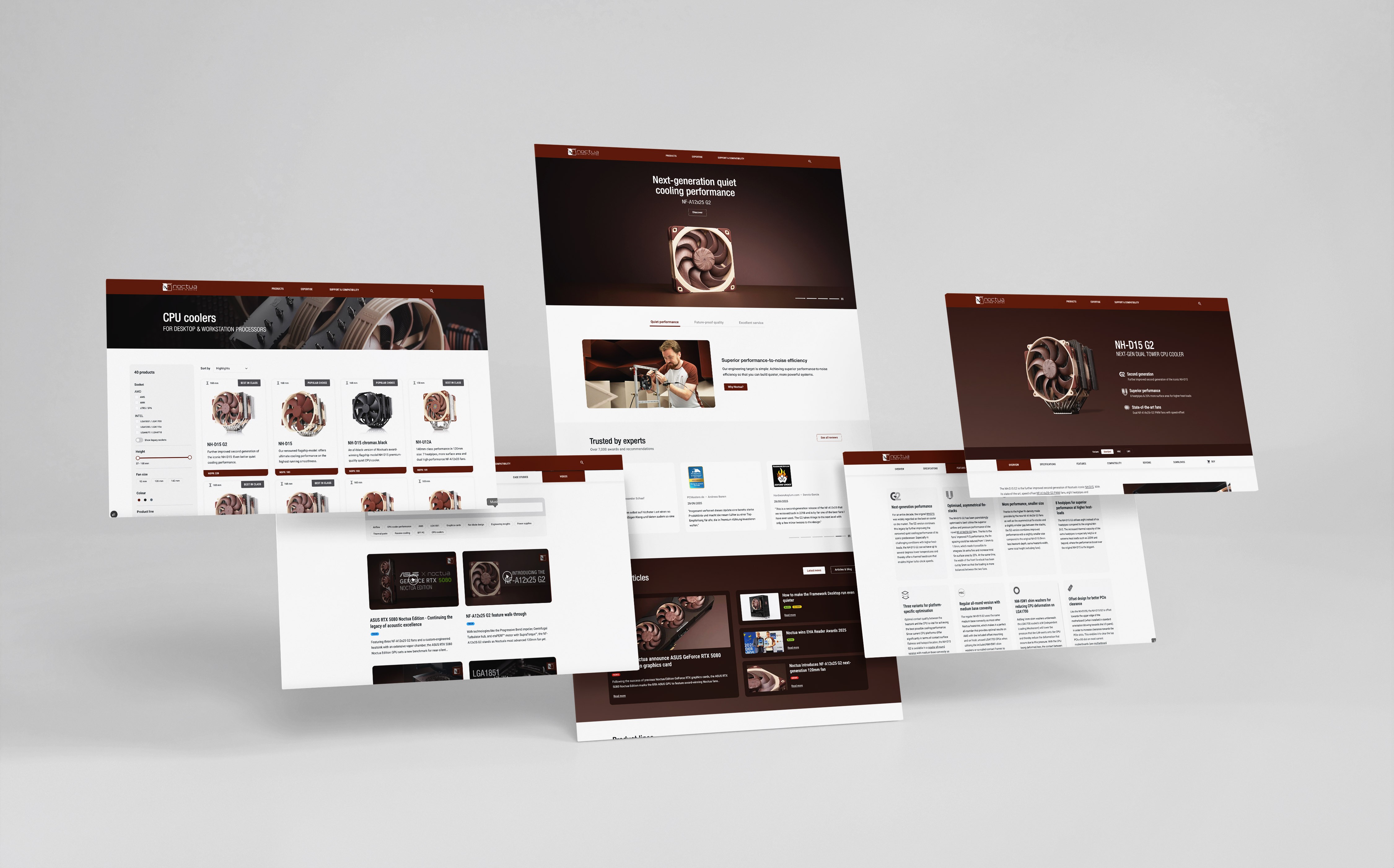 Noctua is a globally recognised manufacturer of premium computer cooling components, known for its deep technical expertise and loyal enthusiast community. We worked as part of a larger, interdisciplinary team over the course of more than a year, leading the design effort and helping define the overall concept for a new, feature rich website platform.